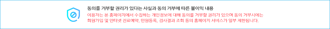 개인정보 수집에 대한 동의 절차 회원의 개인정보 수집과 관련하여 병원의 개인정보취급방침 또는 서비스 이용약관을 통해 그 내용을 고지하고 있으며, 회원이
